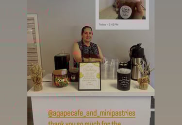 Agape Cafe offers handcrafted coffee and mini pancakes, catering services, and a mobile coffee experience. Taste the love in every sip and bite at your next event or local pop-up! Catering Services available for a baby shower, Family Reunion, Graduation, Weddings, Baptism, Church Event, School Night Out, Birthdays, and more!