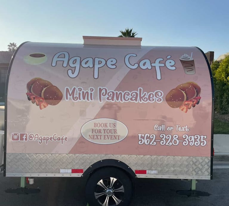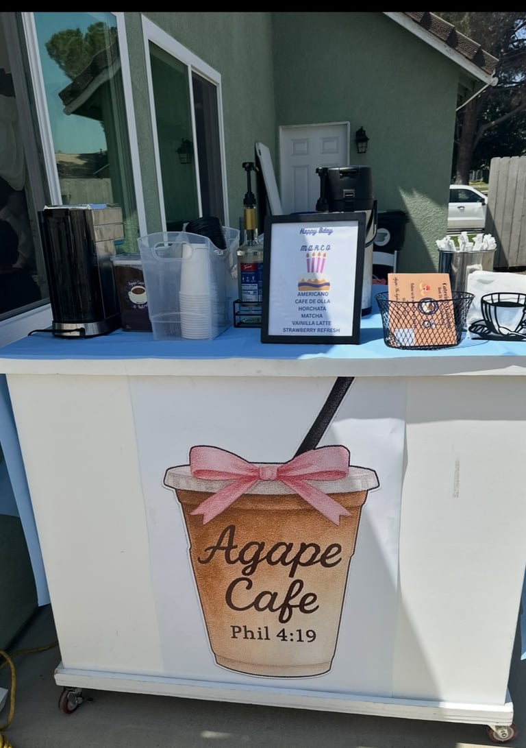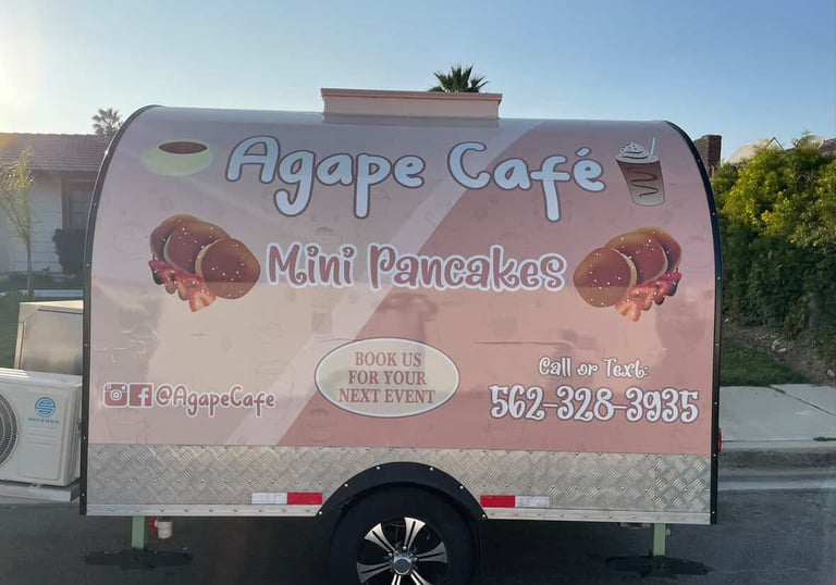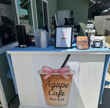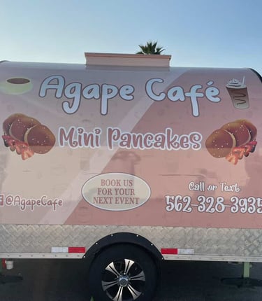 Agape Cafe offers handcrafted coffee and mini pancakes, catering services, and a mobile coffee experience. Taste the love in every sip and bite at your next event or local pop-up! Catering Services available for a baby shower, Family Reunion, Graduation, Weddings, Baptism, Church Event, School Night Out, Birthdays, and more!